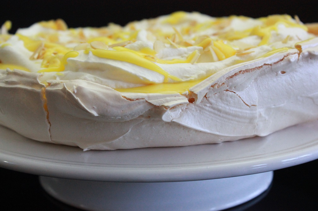 Appelsin- og sitron curd lagde jeg til en pavlova som også ble servert med krem, ristede mandler og bær. Her finner du innlegget om den populære pavlovaen.