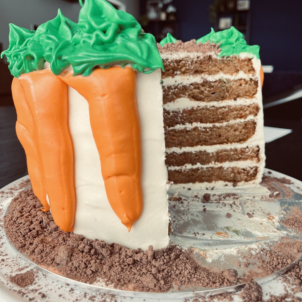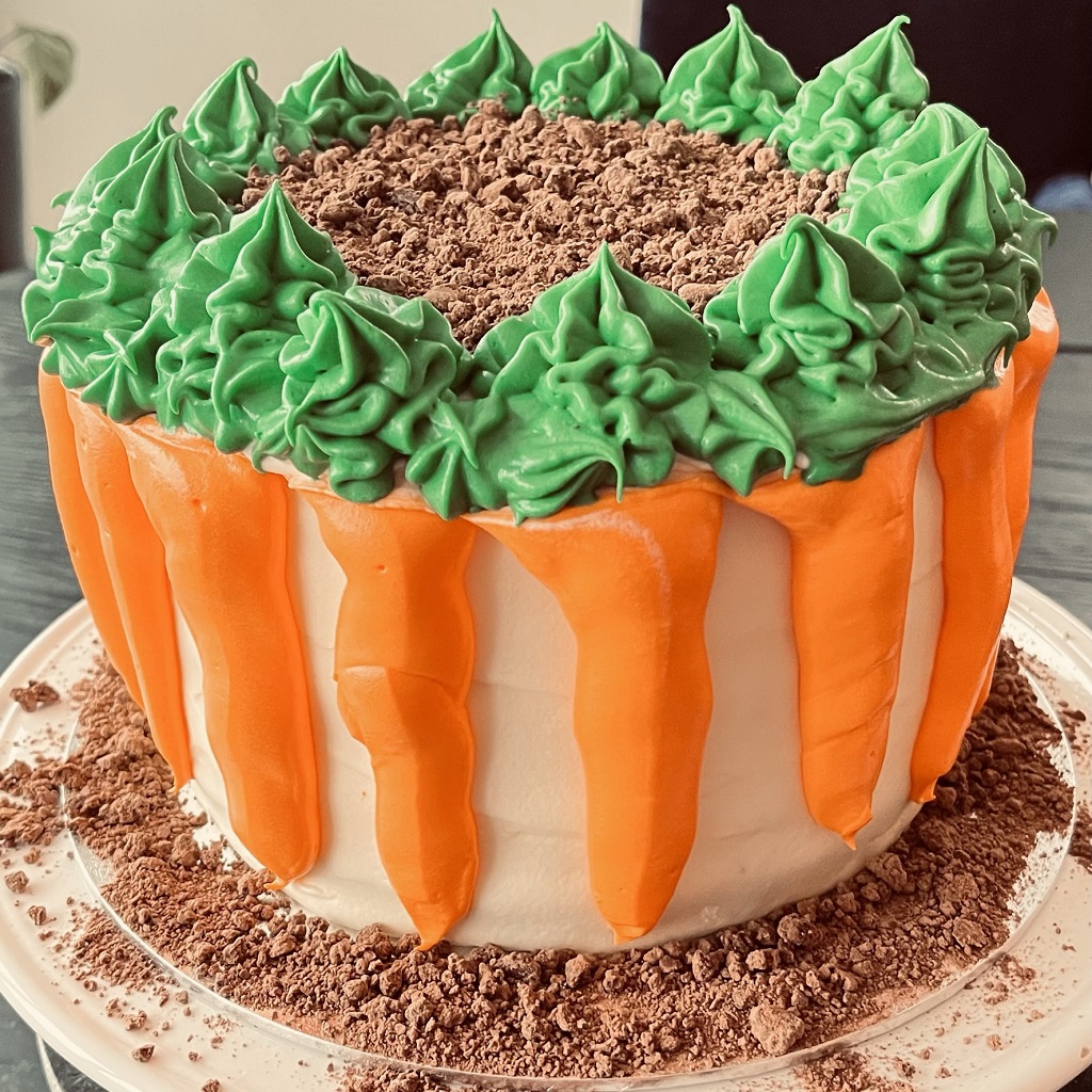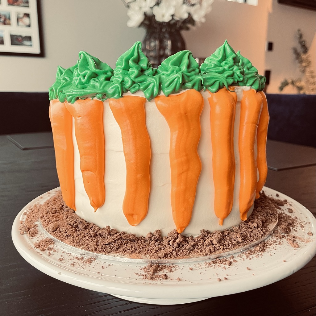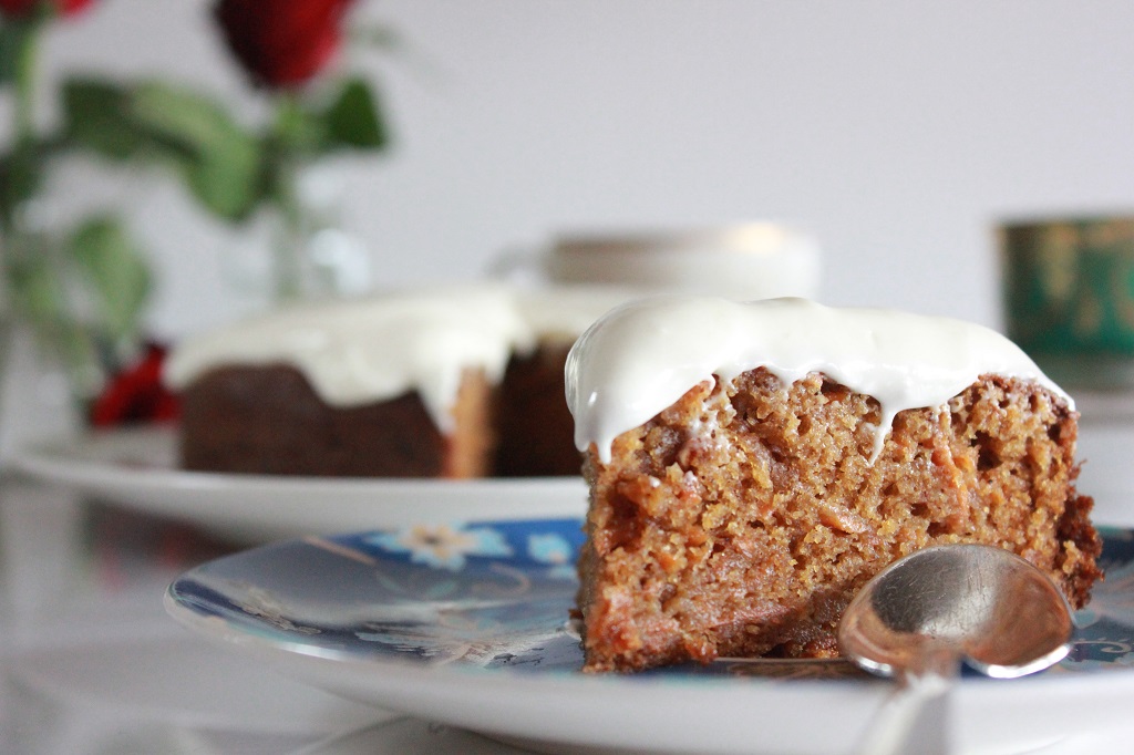I mars hadde jeg bursdag, og det hadde også den største gulrotkake-diggeren i familien. Dermed måtte det bli gulrotkake på kakefatet under årets bursdagsfeiringer også.