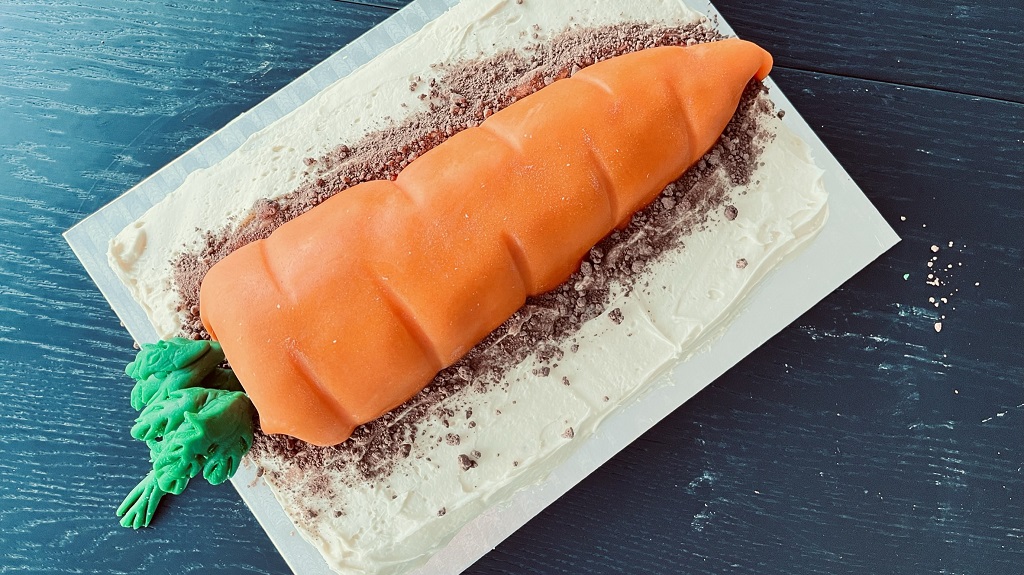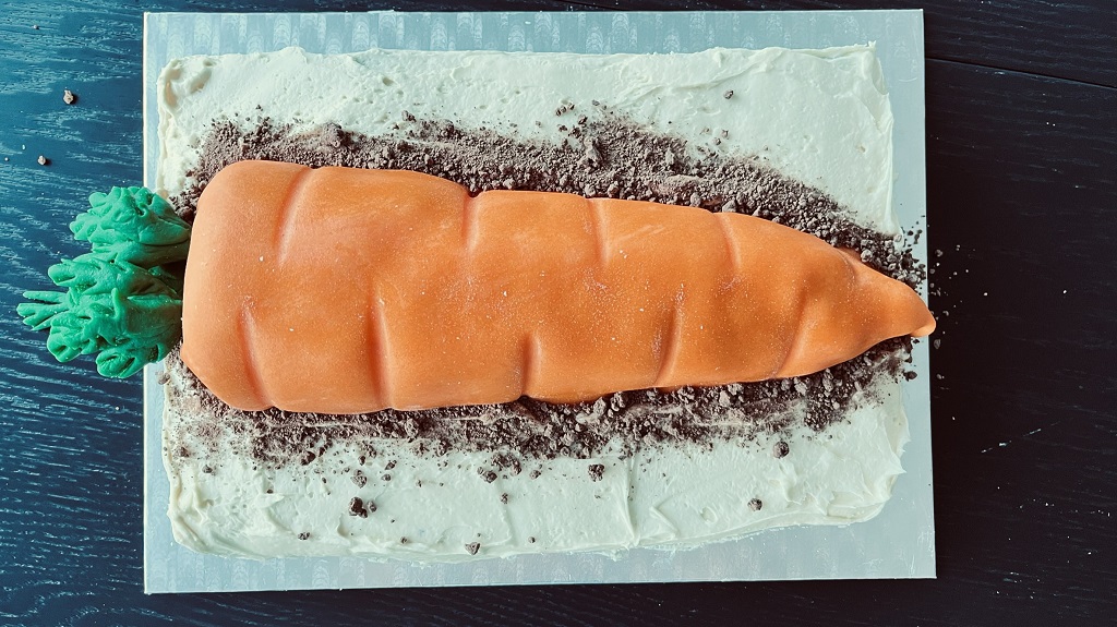 Planen endret seg under produksjonen. Jeg fant ingen godkjente former som jeg kunne bruke til denne gulroten, og dermed måtte jeg tenke nytt. Se hvordan jeg løste det i videoen.