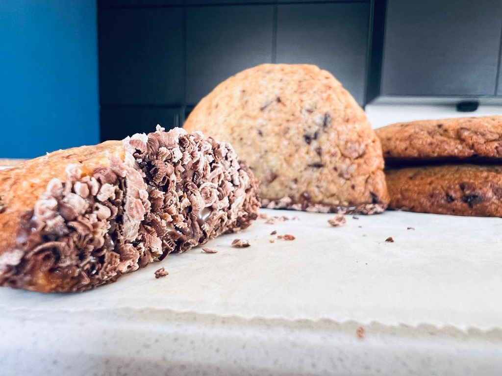 Et serveringstips for store Cookies, er å dele dem i to og lage en fot