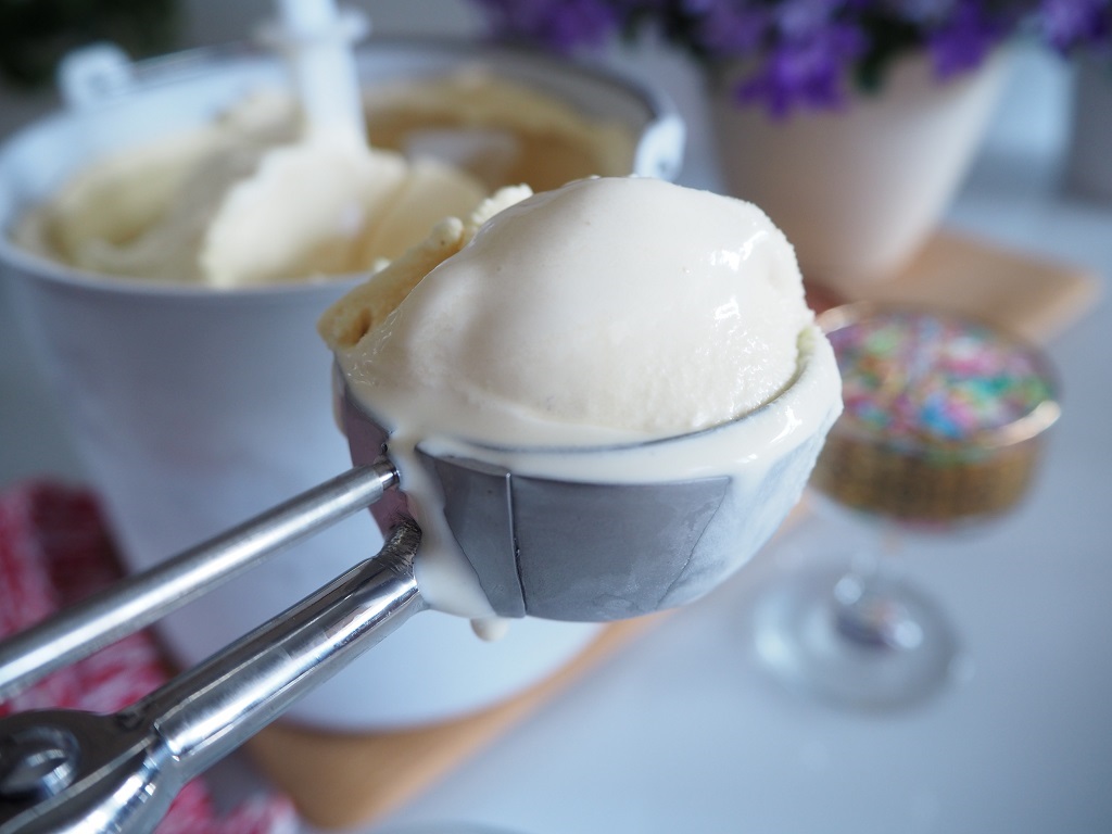 Hjemmelaget yoghurtiskrem – vanilje – er lagd i min nye iskremmaskin – jeg er frelst.