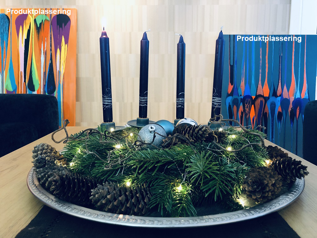 I fjor laget jeg en adventsdekorasjon på et firkantet stålfat, og i år har jeg laget