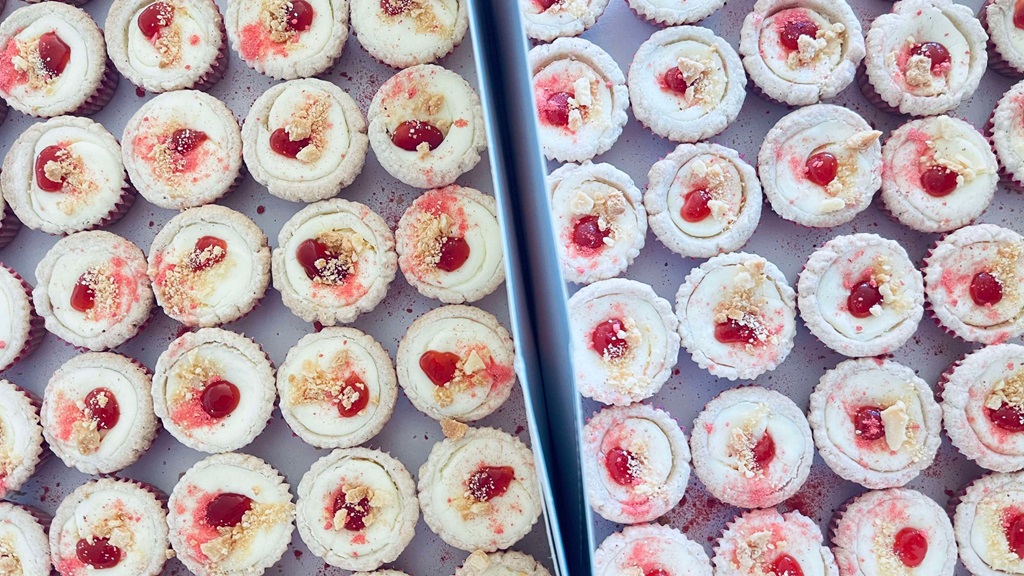 Mini glutenfri ostekake er et perfekt lite stykke munnfull ostekake.