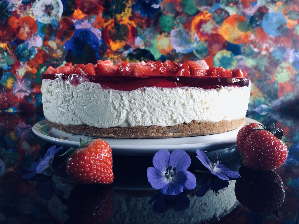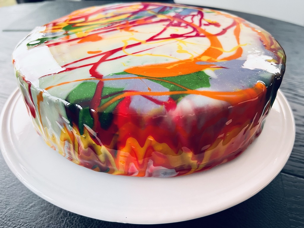 Jeg har lenge hatt lyst til å prøve å dekorere en ostekake med fargerik speilglasur
