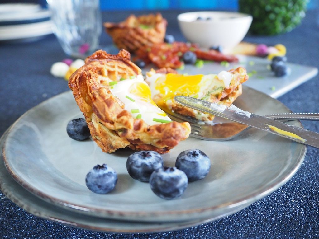 Frokostvafler som f.eks. vaffelhjerter med egg og bacon, kan du lage med restevaflene dine. Jeg