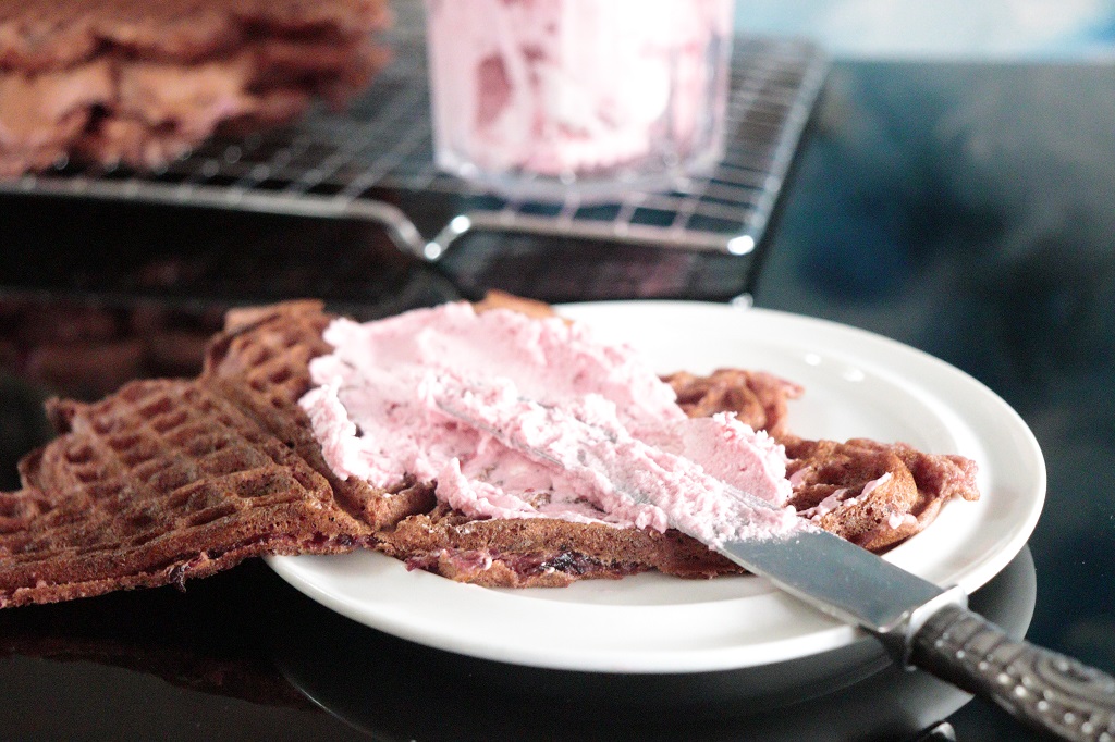 Vafler med rødbete – rosa vafler med rosa krem
