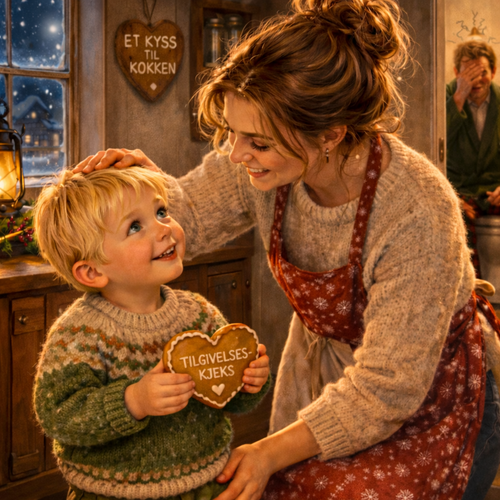 Lars glir ned fra stolen og legger de små armene rundt halsen til moren. «Ja takk. Jeg vil gjerne ha en tilgivelseskjeks.»
