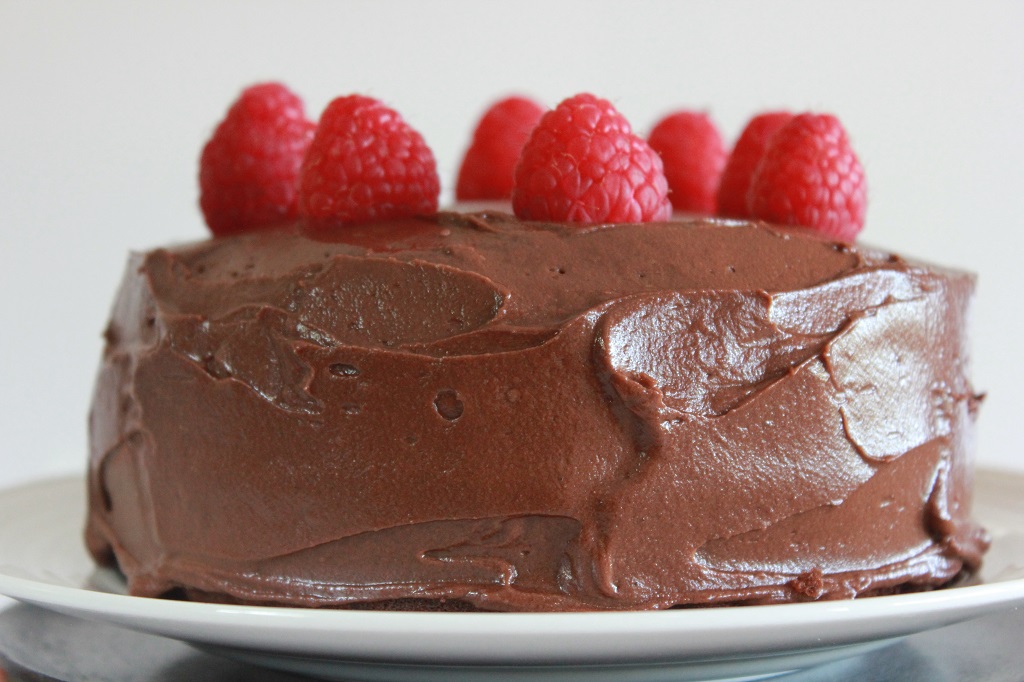 Denne saftige sjokoladekaken er bakt i en form som er 15 cm i diameter, og 7 cm høy. Jeg har bakepapir i bunnen og langs kantene på formen, men om du heller bare ønsker å smøre formen, gjør du det. Kaken ble ganske høy, så den kan enten deles i to eller tre lag. Jeg valgte å dele den i to lag.
