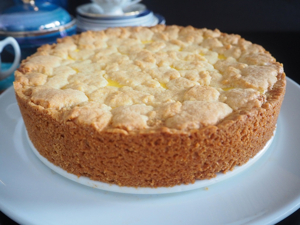 Denne deigen smuler lett, så jeg innrømmer at den legges i formen som et puslespill = formen dekkes litt og litt av gangen. Det samme gjelder toppen av kaken.