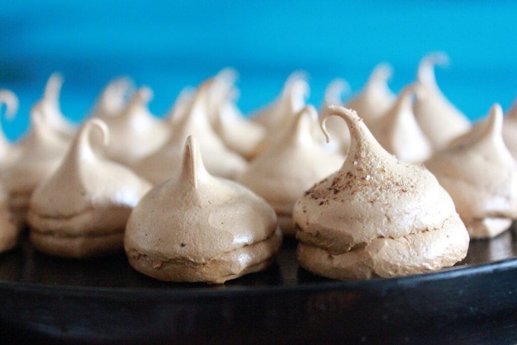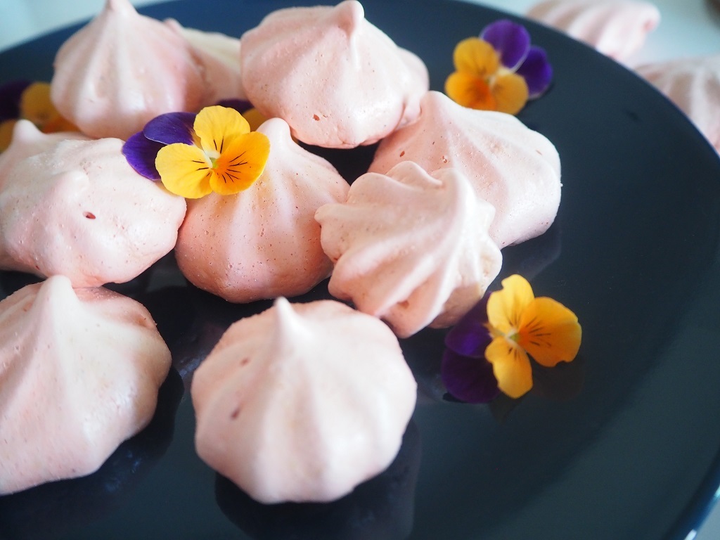 Eggehviter ble først pisket i ca. tre minutter, før jeg hadde i siktet melis og vaniljesukker. Deretter lot jeg kjøkkenmaskinen gå til jeg var fornøyd med konsistensen. Dette tar gjerne 10 minutter +.