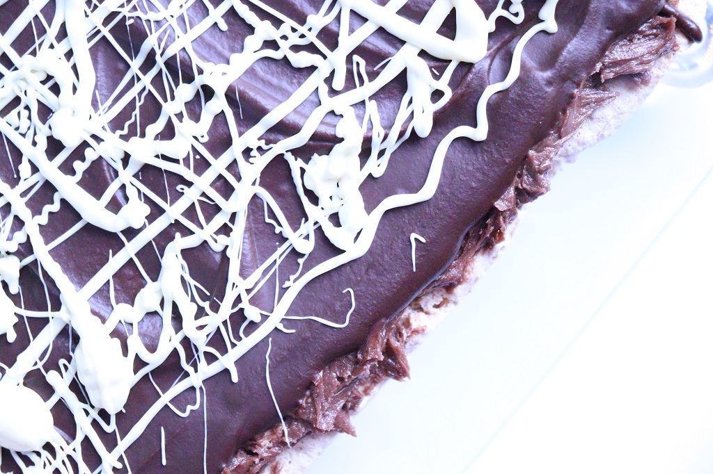 Jeg valgte å pynte med smeltet hvit sjokolade. Til denne kaken brukte jeg 100 g hvit sjokolade til dekor.